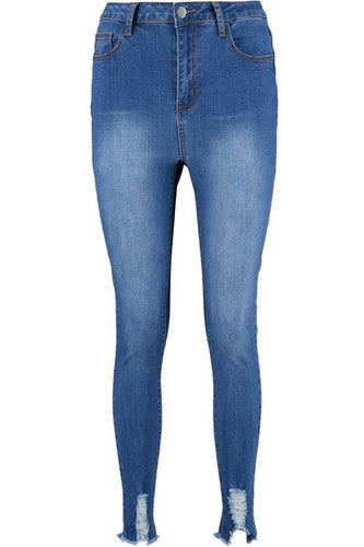 Mid Rise Ultra Distressed Hem Skinny Jeans