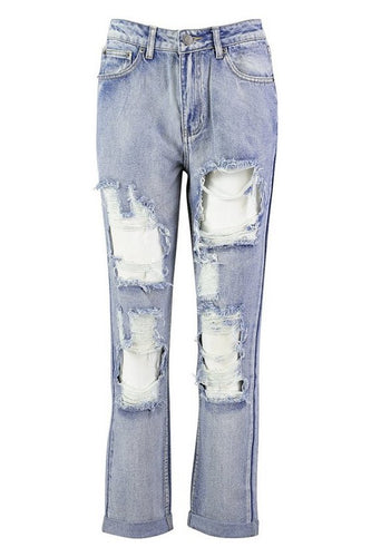Mid Rise Light Blue Distressed Boyfriend Jean