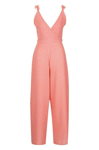 Petite Woven Spot Print Ruffle Sleeve Jumpsuit