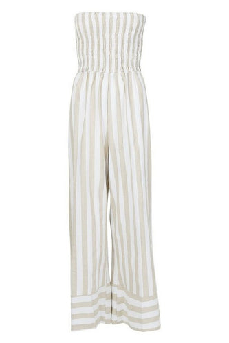 Linen Stripe Shirred Backless Wide Leg Jumpsuit