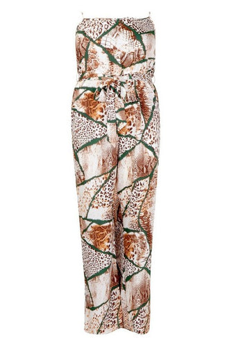 Plus Mixed Animal Print Tie Waist Wide Leg Jumpsuit