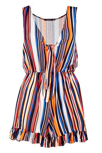 Plunge Striped Ruffle Hem Playsuit