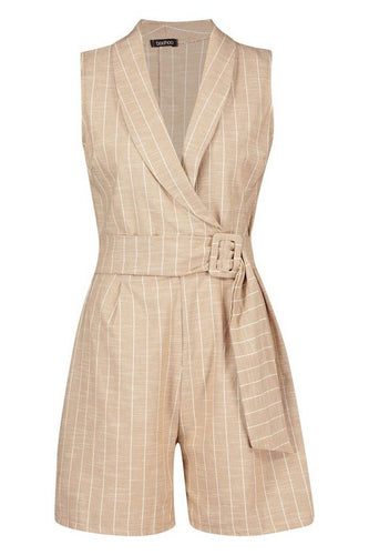 Linen Look Stripe Blazer Wrap Playsuit