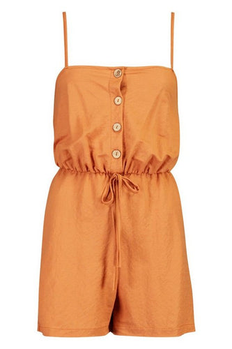Button Front Linen Look Playsuit
