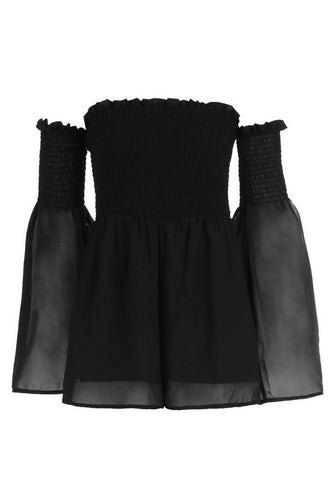 Brinley Bardot Sheared Waist Romper