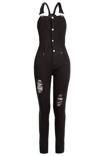 Button Front Slim Fit Denim Overalls