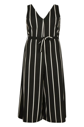 Plus Stripe Culotte Belted Jumpsuit