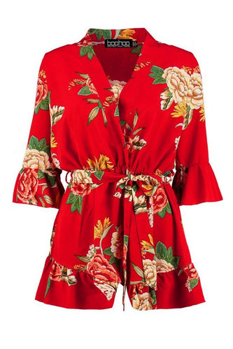 Oriental Kimono Style Belted Romper