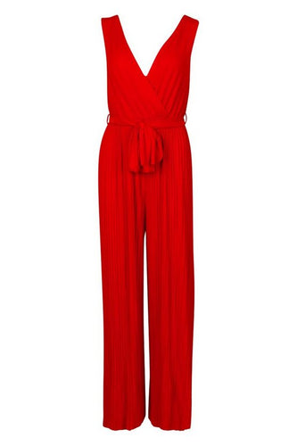 Pleated Wide Leg Wrap Jumpsuit
