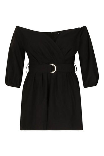 Plus Linen Mix Bardot Belted Playsuit