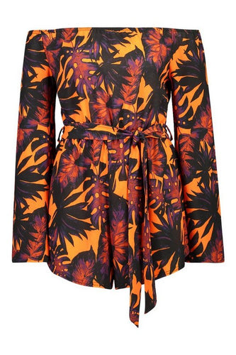 Tall Palm Print Off The Shoulder Playsuit