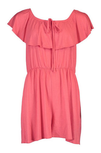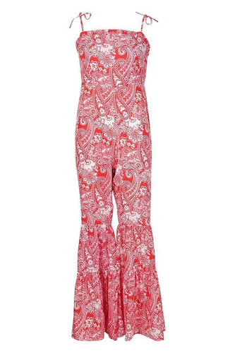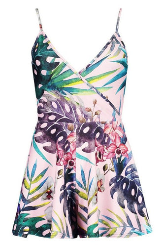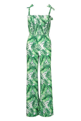 Shirred Tie Shoulder Palm Print Culotte Jumpsuit