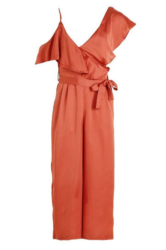 Asymmetric Neckline Satin Wrap Culotte Jumpsuit