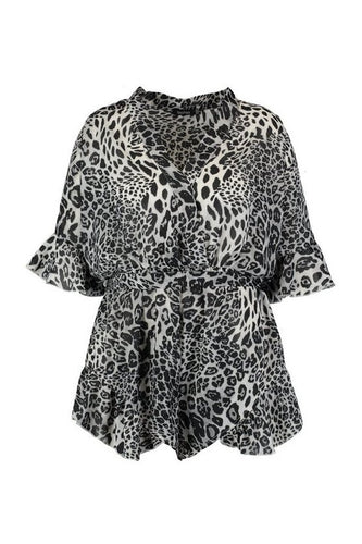 Plus Zoe Leopard Print Plunge Wrap Romper