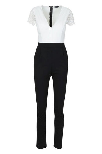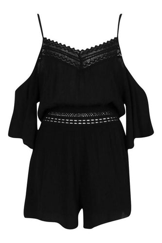 Tall Lace Detail Crinkle Cold Shoulder Playsuit