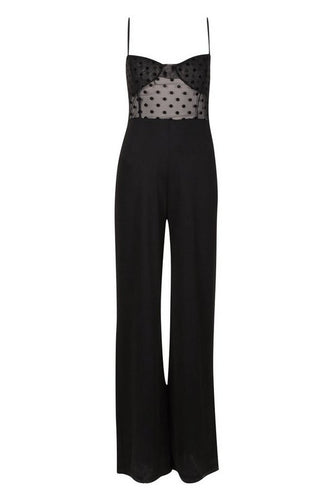 Cupped Polka Dot Mesh Jumpsuit