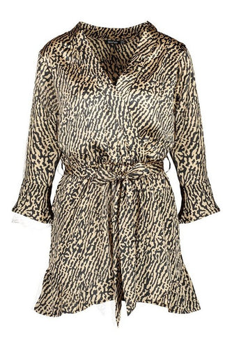 Ruffle Detail Tie Waist Satin Animal Playsuit