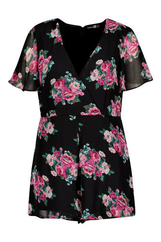 Plus Floral Print Wrap Front Playsuit