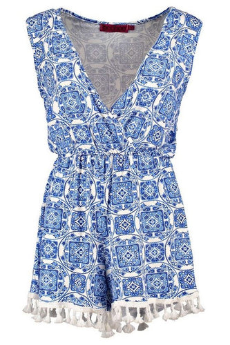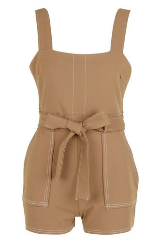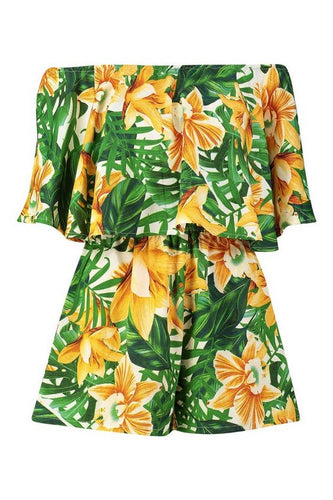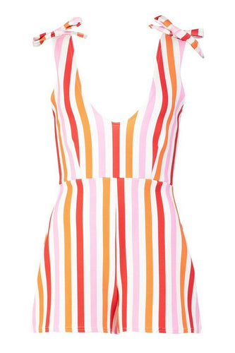 Off Shoulder Tie Sleeve Stripe Playsuit