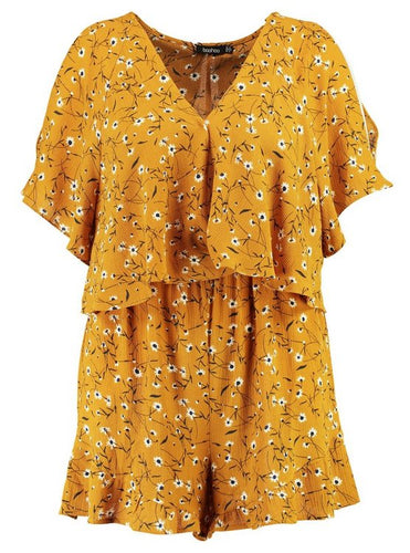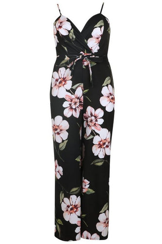 Plus Daisy Floral Plunge Scuba Wrap Jumpsuit