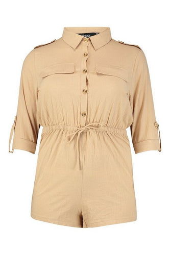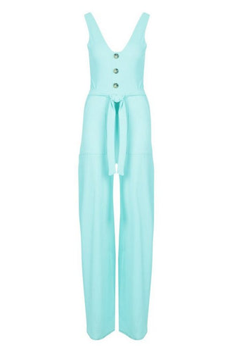 Horn Button Rib Tie Belt Pocket Jumpsuit
