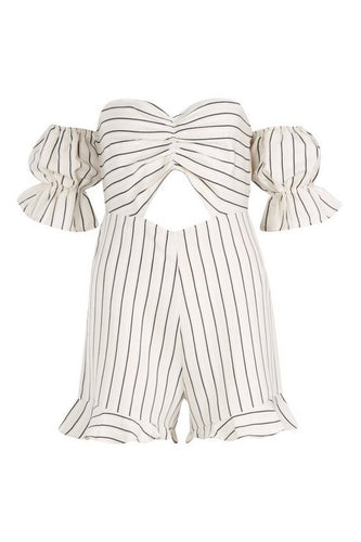 Tonal Stripe Sweetheart Off The Shoulder Playsuit