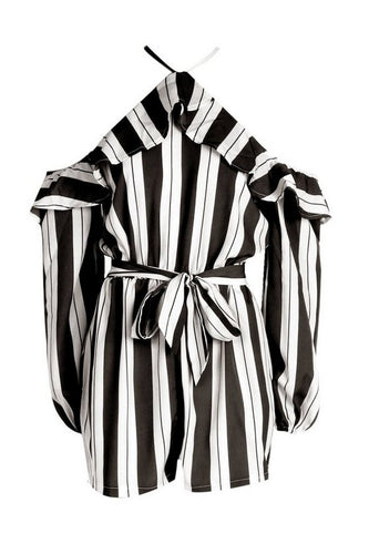 Stripes Ruffle Cold Shoulder Romper