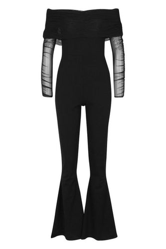 Mesh Bardot Ruched Jumpsuit
