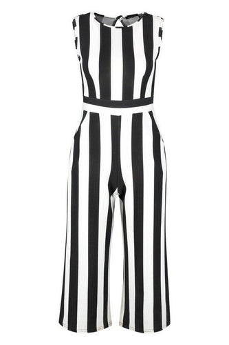 Petite Monochrome High Neck Striped Jumpsuit