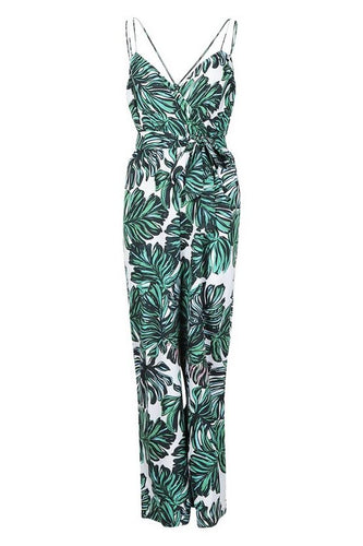 Wrap Front Tie Waist Palm Print Culotte Jumpsuit