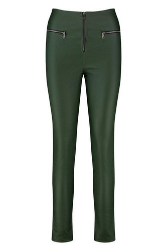 Zip Front High Waist Leather Look Pants