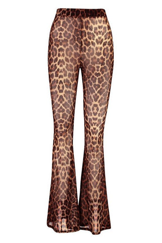 Mesh Leopard Flared Trousers