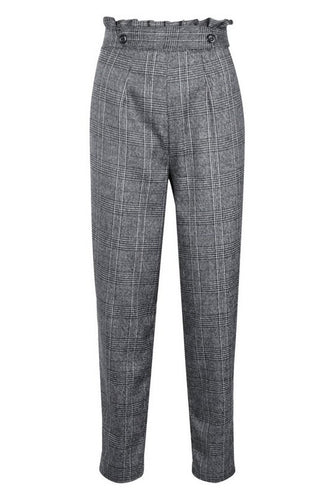 Paper Bag Waist Check Tapered Pants