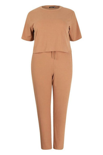 Plus Soft Rib Basic T-Shirt & Pants Co-Ord