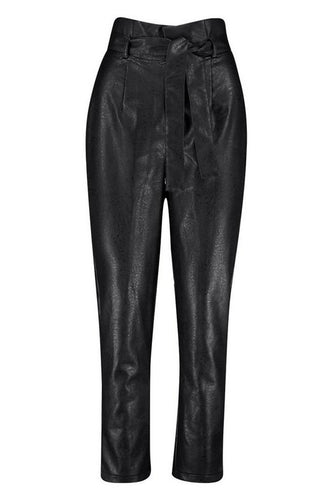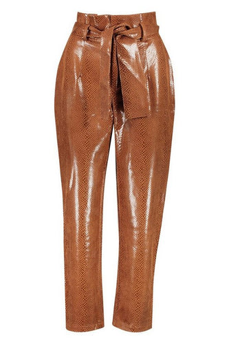 Snake Print Leather Look Paperbag Pants