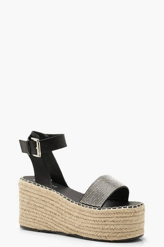 Diamante Espadrille Flatform Sliders