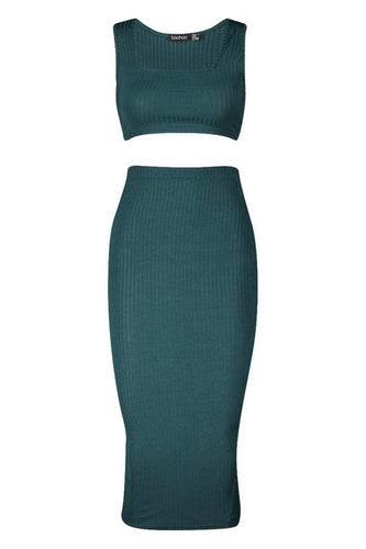 Jumbo Rib Square Neck Bralet - Midi Skirt Co-ord