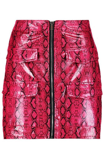 Snake Print Leather Look A Line Mini Skirt
