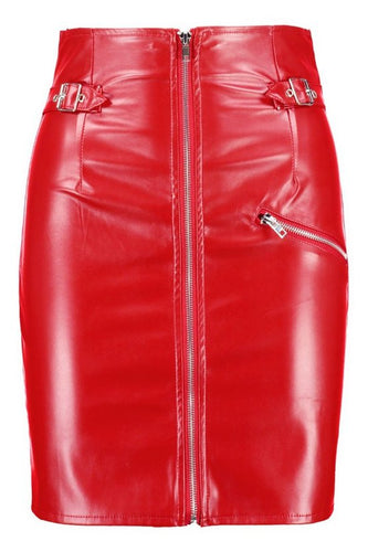 Leather Look High Waist Buckle Mini Skirt
