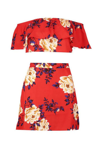 Floral Ruffle Top and Mini Skirt Set