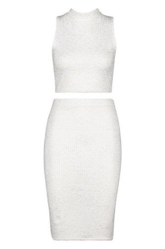 Metallic Rib High Neck Top - Mini Skirt Co-Ord