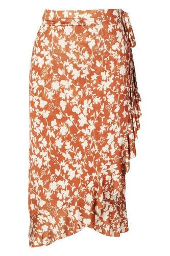 Recycled Floral Print Ruffle Wrap Midi Skirt