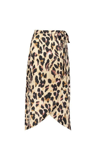 Leopard Print Wrap Tie Waist Maxi Skirt