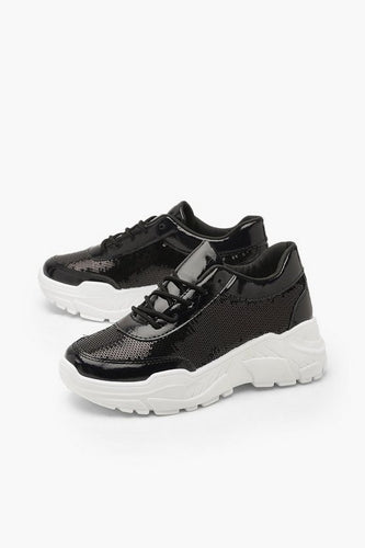 Sequin Panel Chunky Sole Lace Up Trainers