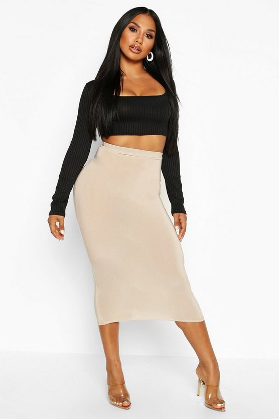 Basic High Waist Slinky Fitted Midaxi Skirt
