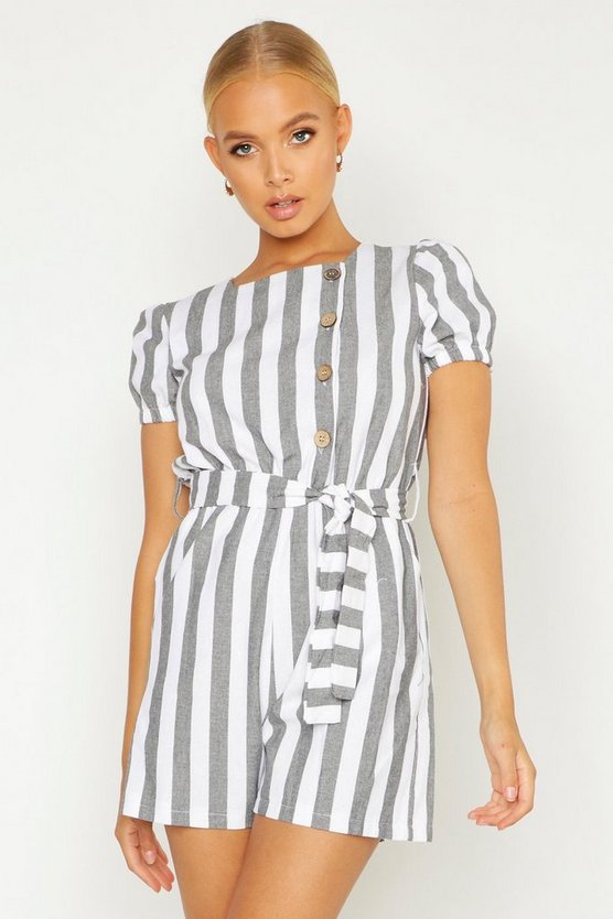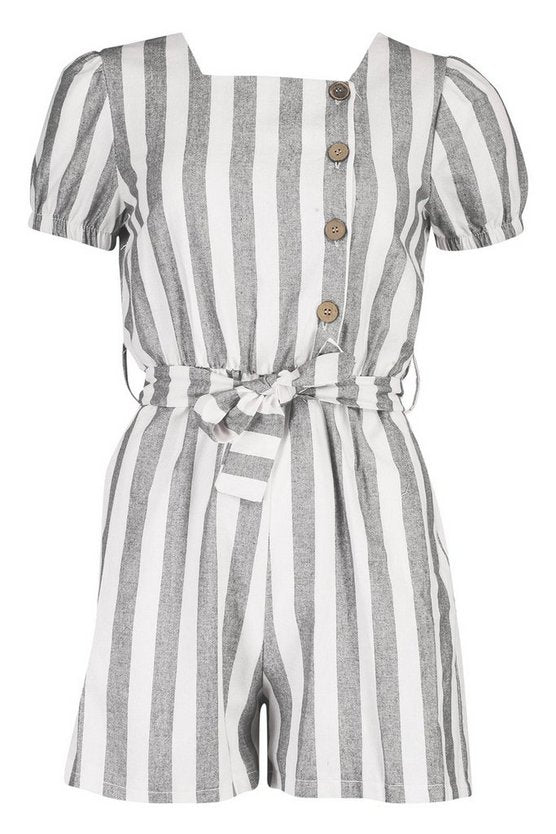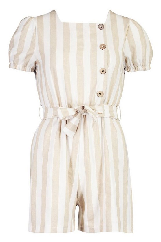 Button Front Linen Stripe Playsuit