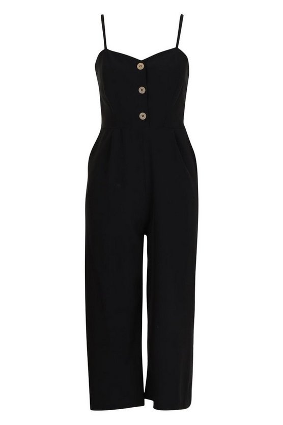 • Load image into Gallery viewer, Button Front Wide Leg Culotte Jumpsuit