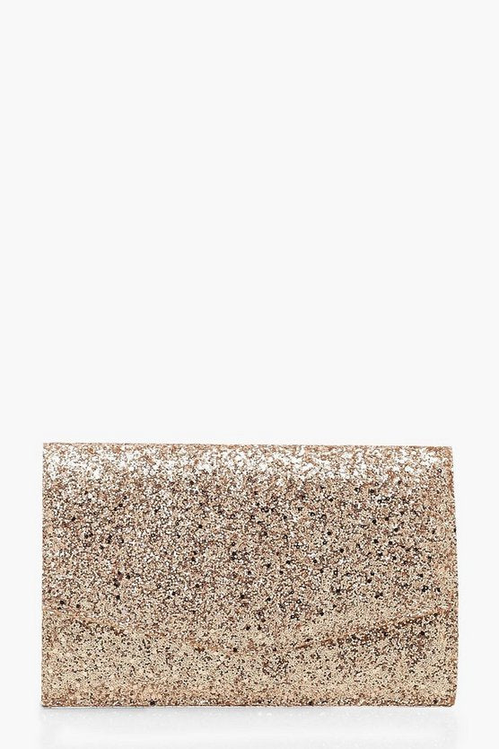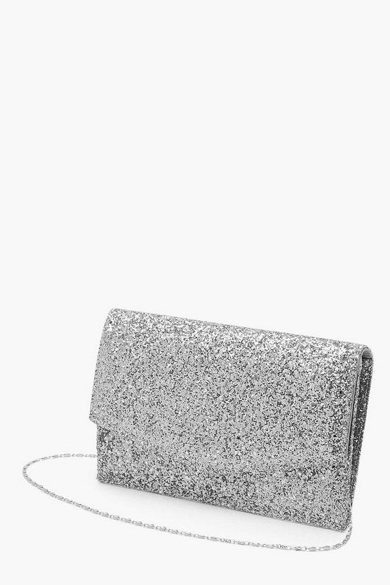 Chunky Glitter Envelope Clutch Bag & Chain