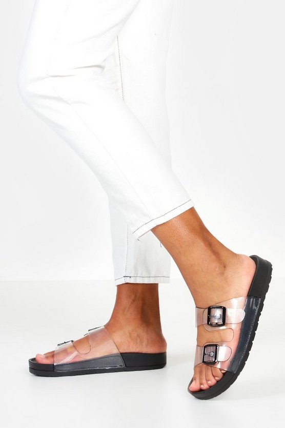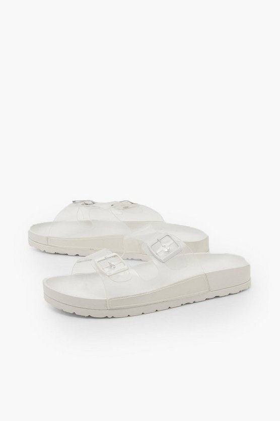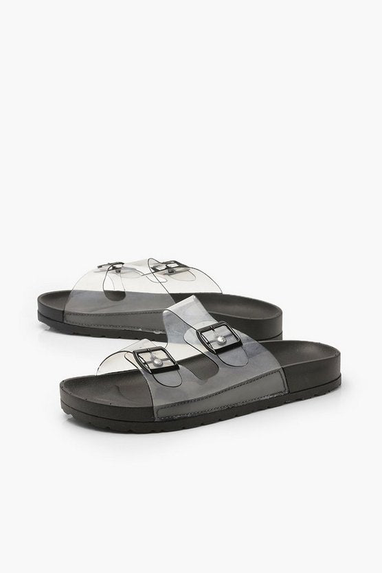 Clear Buckle Footbed Sliders