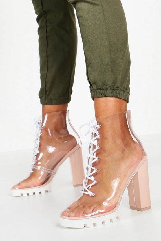 • Load image into Gallery viewer, Clear Lace Up Block Heel Hiker Boots